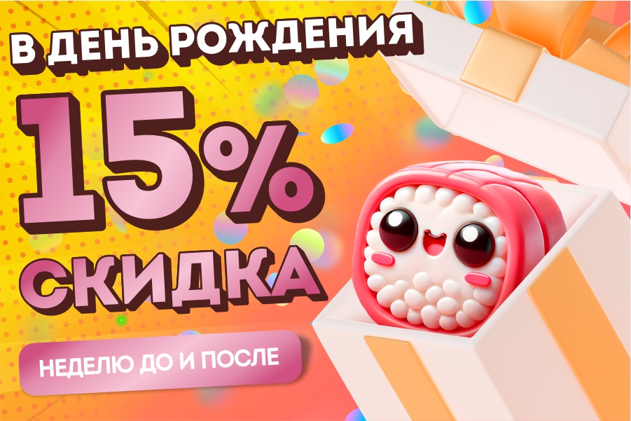 ****В период за 7 дней до и после дня вашего рождения скидка по карте составит 15%. Скидка не действует на акционные товары. Применить списание накопленных бонусов к данной покупке не возможно. Бонусы за такую покупку не будут начислены.